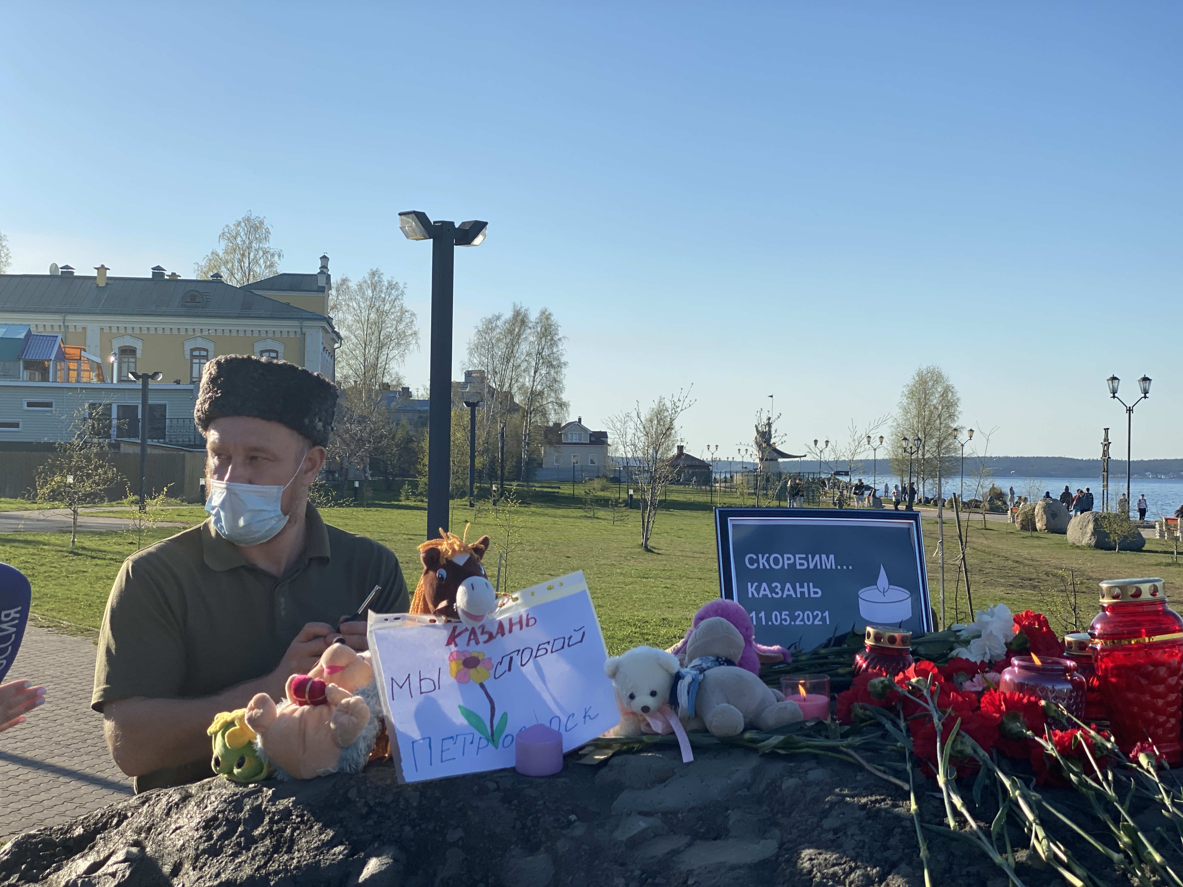 "У меня ребёнок учится в школе, я не представляю тот шок родителей, которые это увидели. Самое главное сейчас крепость духа. Соболезную", - сказал атаман городского казачьего общества Петрозаводска Наур Гокинаев.