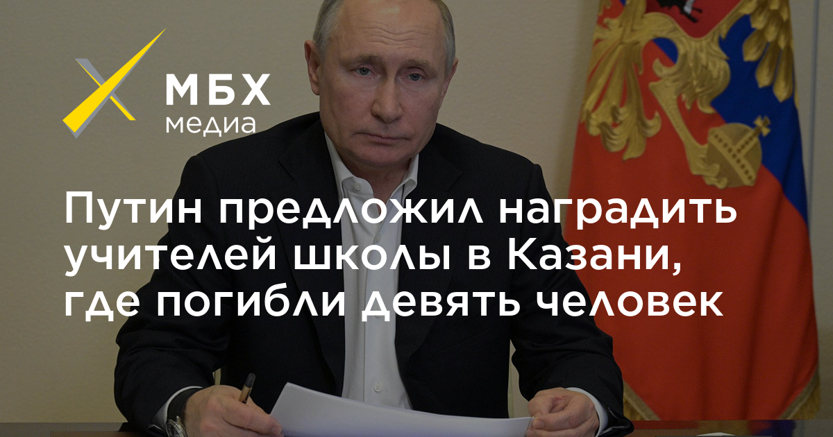 Путин предложил наградить учителей школы в Казани, где погибли девять человек