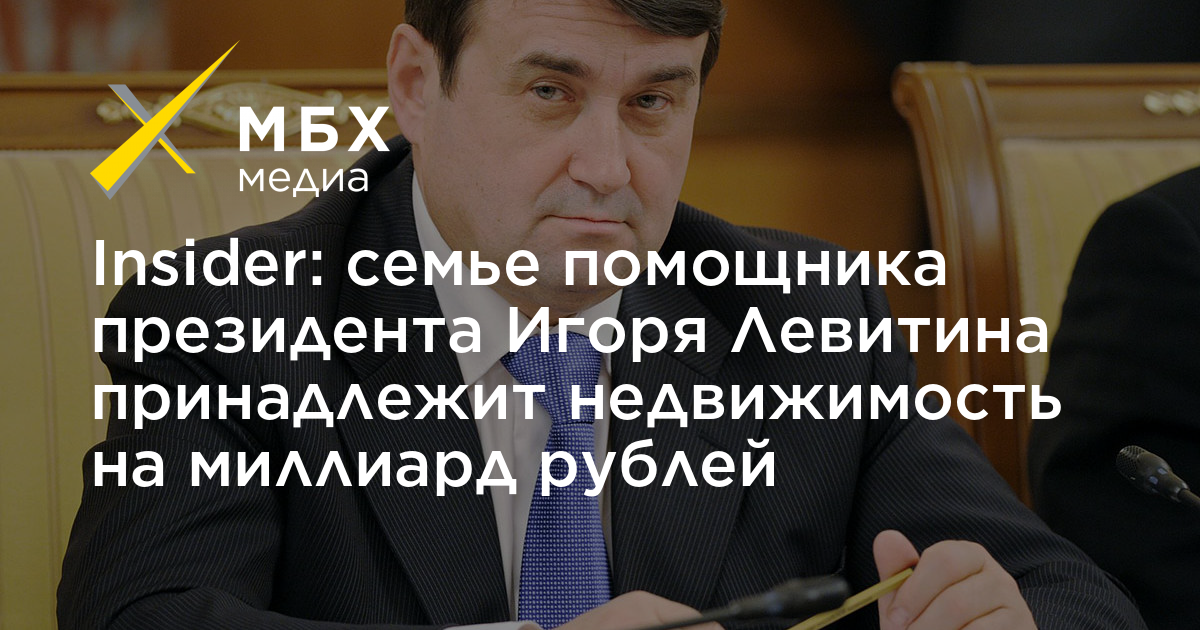 Insider: cемье помощника президента Игоря Левитина принадлежит недвижимость на миллиард рублей
