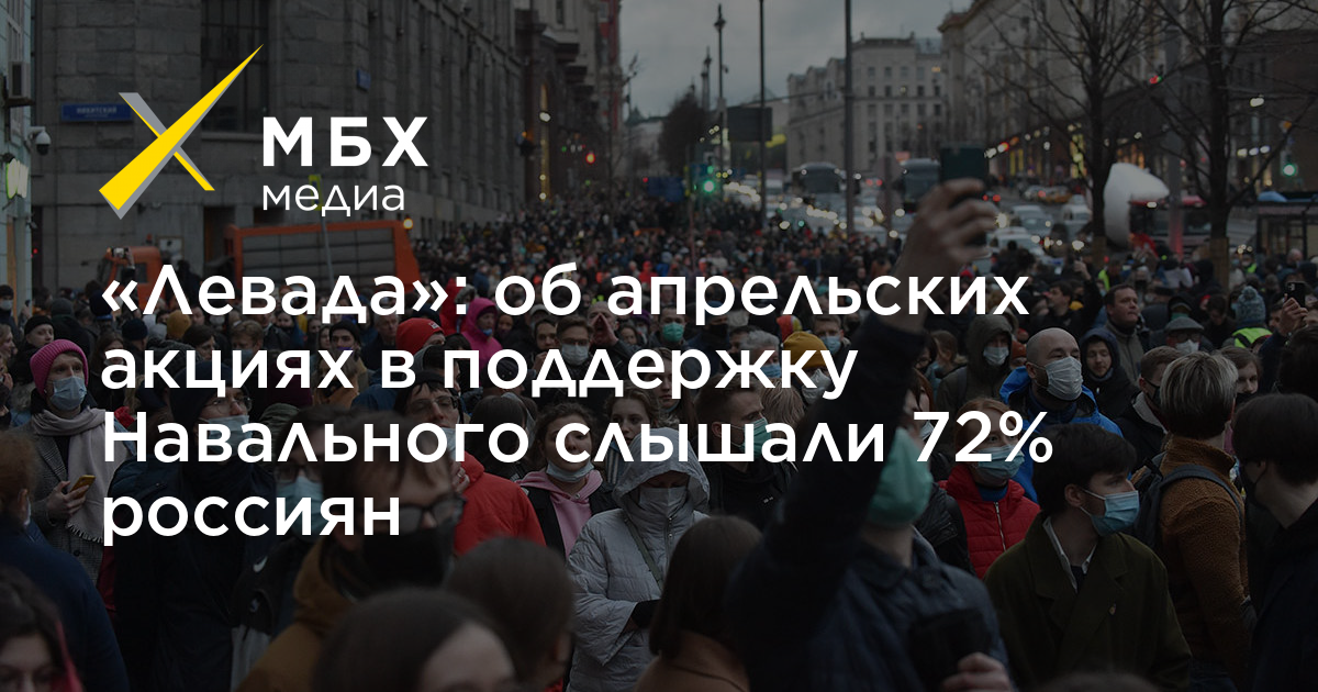 Почти три четверти россиян (72%) слышали о протестных акциях в поддержку Алексея Навального, которые прошли по всей России 21 апреля. Об этом говорится в исследовании «Левада-центра».