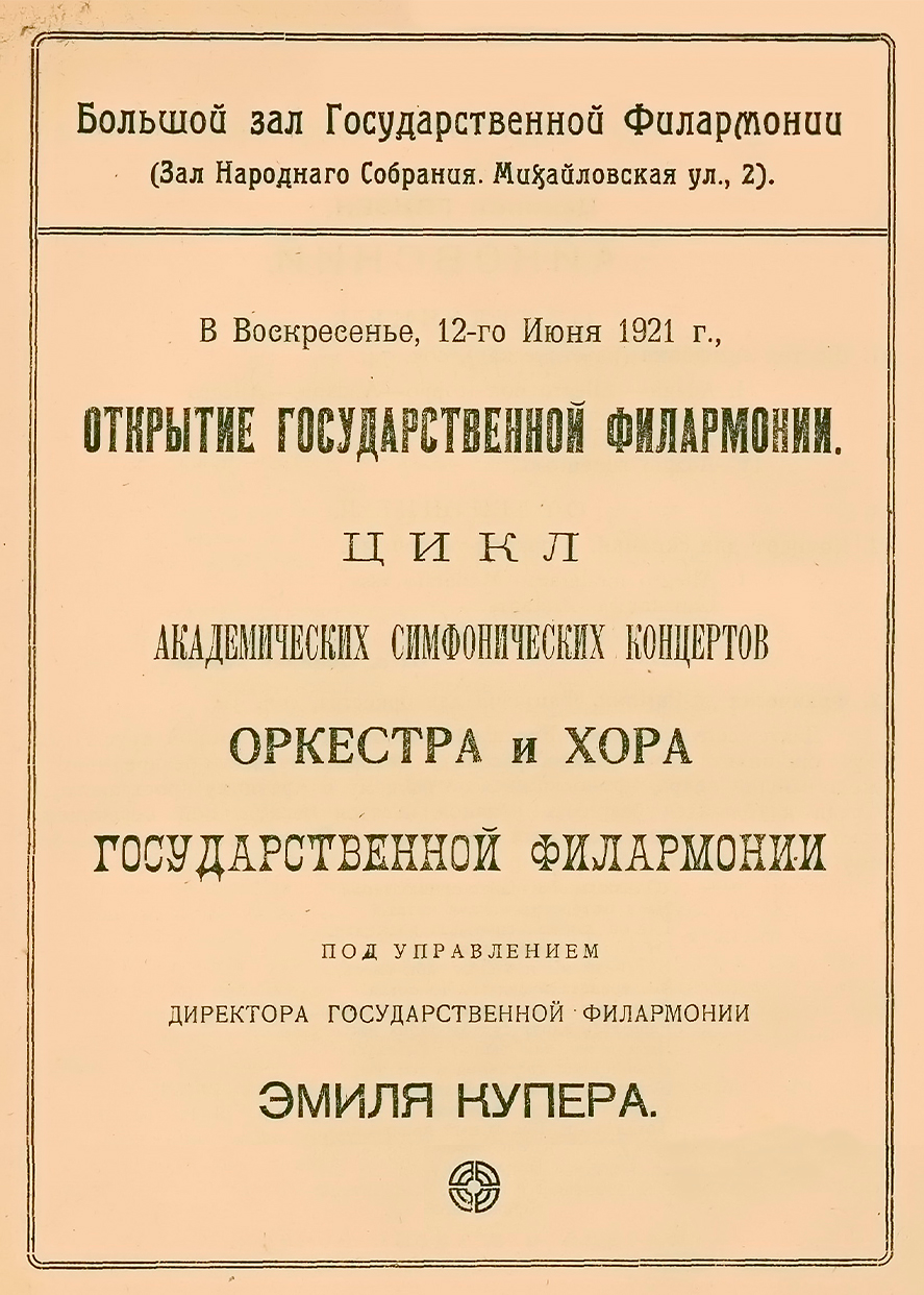 На сайте также можно найти старые филармонические афиши, в том числе датированные 1921 годом. Например, 12 июня артисты исполнили симфонию Чайковского, а 29 июня — «Остров мертвых» Рахманинова.