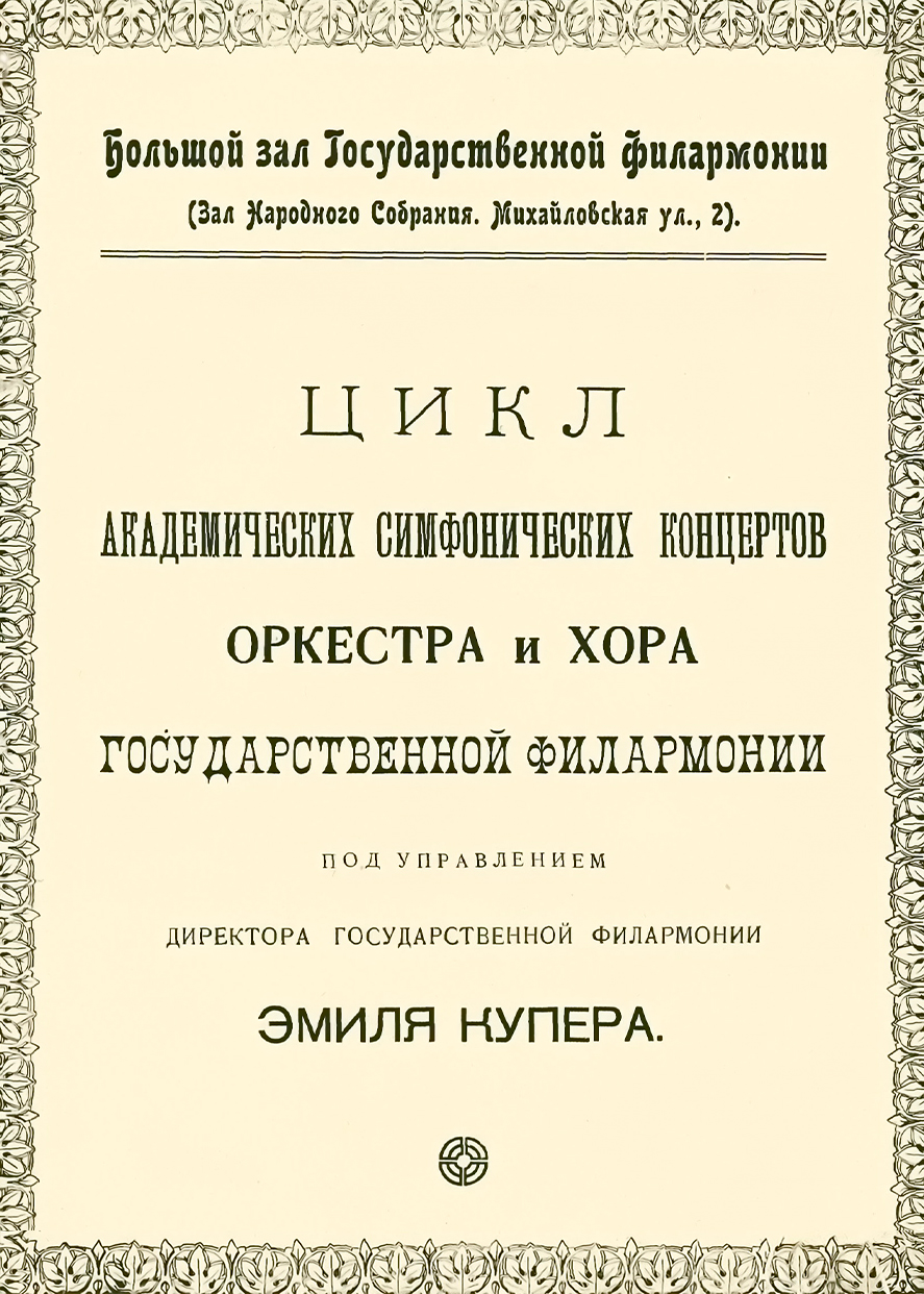 Одна из статей посвящена Придворному оркестру — именно для его спасения в 1921 году учредили Петроградскую филармонию. По мнению Анатолия Луначарского, который в тот момент занимал пост народного комиссара просвещения, оркестр был тем хорошим, что досталось Советской России от царской власти.