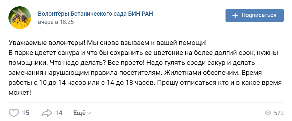Ботанический сад в Петербурге ищет волонтеров, которые помогут сохранить цветущую сакуру.