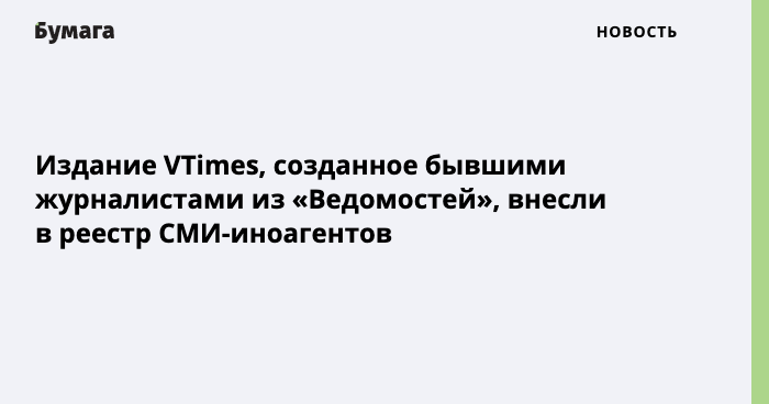 Издание VTimes, созданное бывшими журналистами из «Ведомостей», внесли в реестр СМИ-иноагентов