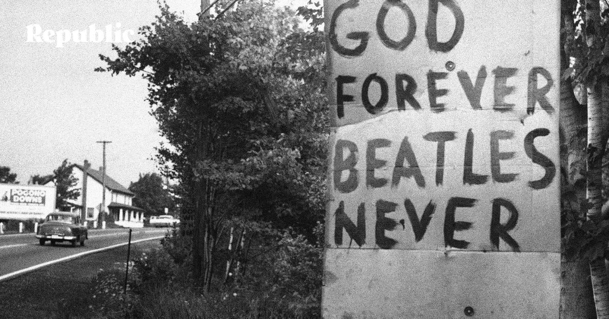 "Бог навсегда — "битлз" никогда!" Антибитловский плакат в США, 1966 год. Фраза Леннона о том, что The Beatles "более популярны, чем Иисус" оскорбила чувства христиан-фундаменталистов "библейского пояса" Америки.