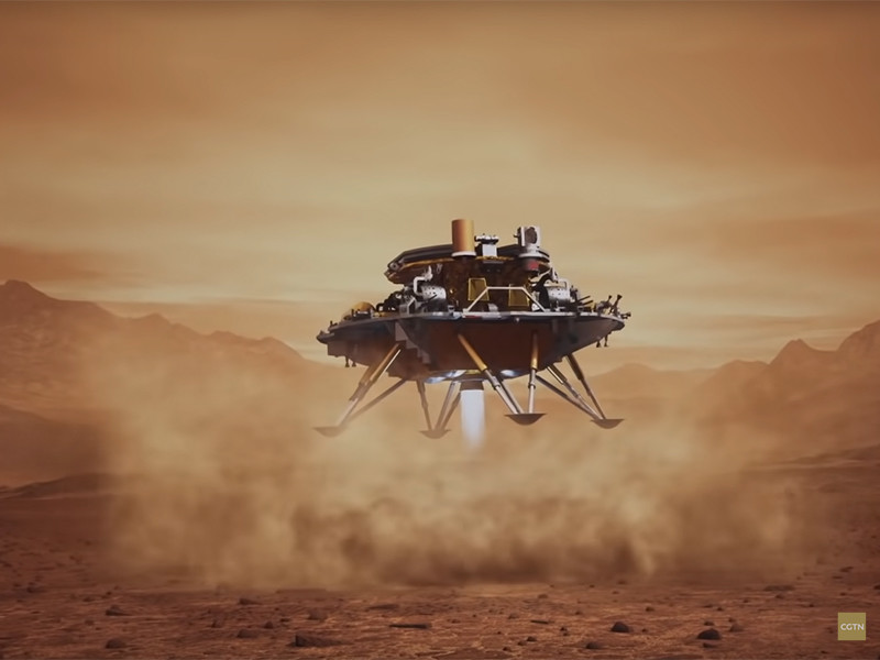 "Китай впервые (и с первой попытки) осуществил успешную посадку аппарата "Тяньвэнь-1" с марсоходом "Чжужун" на поверхность Марса. Сообщены координаты точки посадки: 109.7 E, 25.1 N, что менее 40 км от целевой точки на равнине Утопия", - пишет в Facebook эксперт в области авиации и космонавтики.