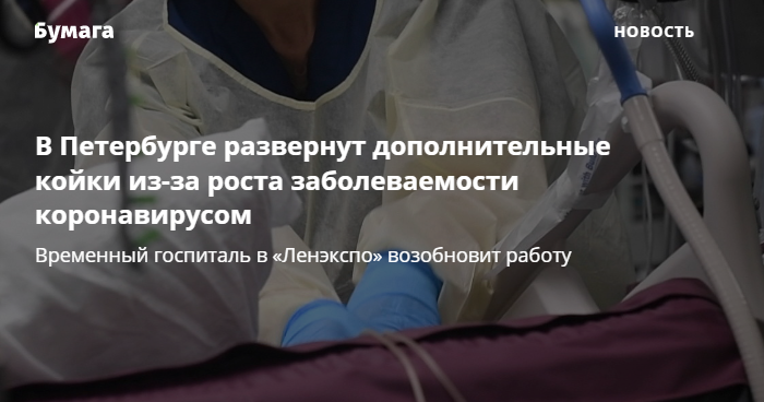 В Петербурге развернут дополнительные койки из-за роста заболеваемости коронавирусом. Временный госпиталь в «Ленэкспо» возобновит работу