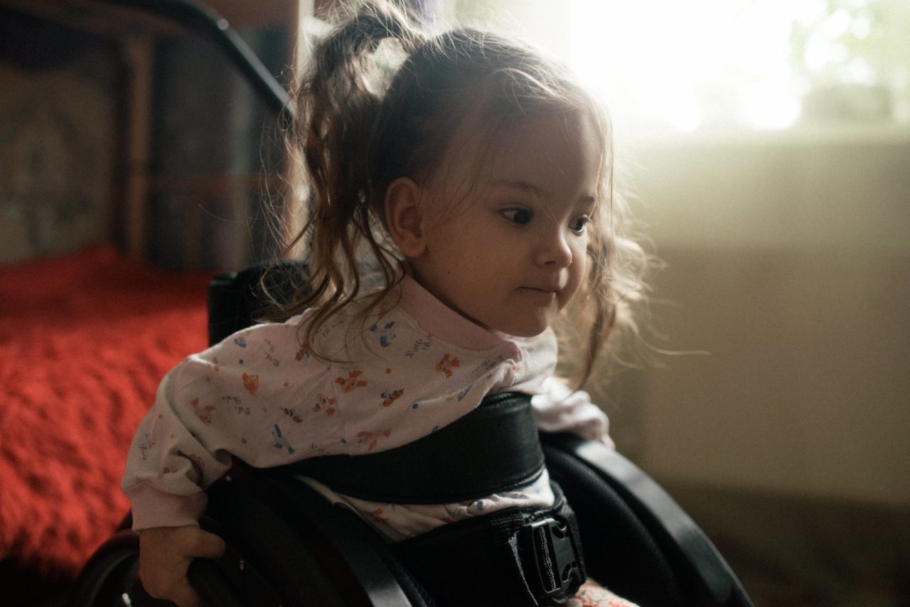 В станице Атаманской живет трехлетняя Дарья — маленький боец с золотыми волосами, веселой улыбкой и сильными ручками. В своей крошечной коляске она ездит по всему дому, куда ей заблагорассудится.