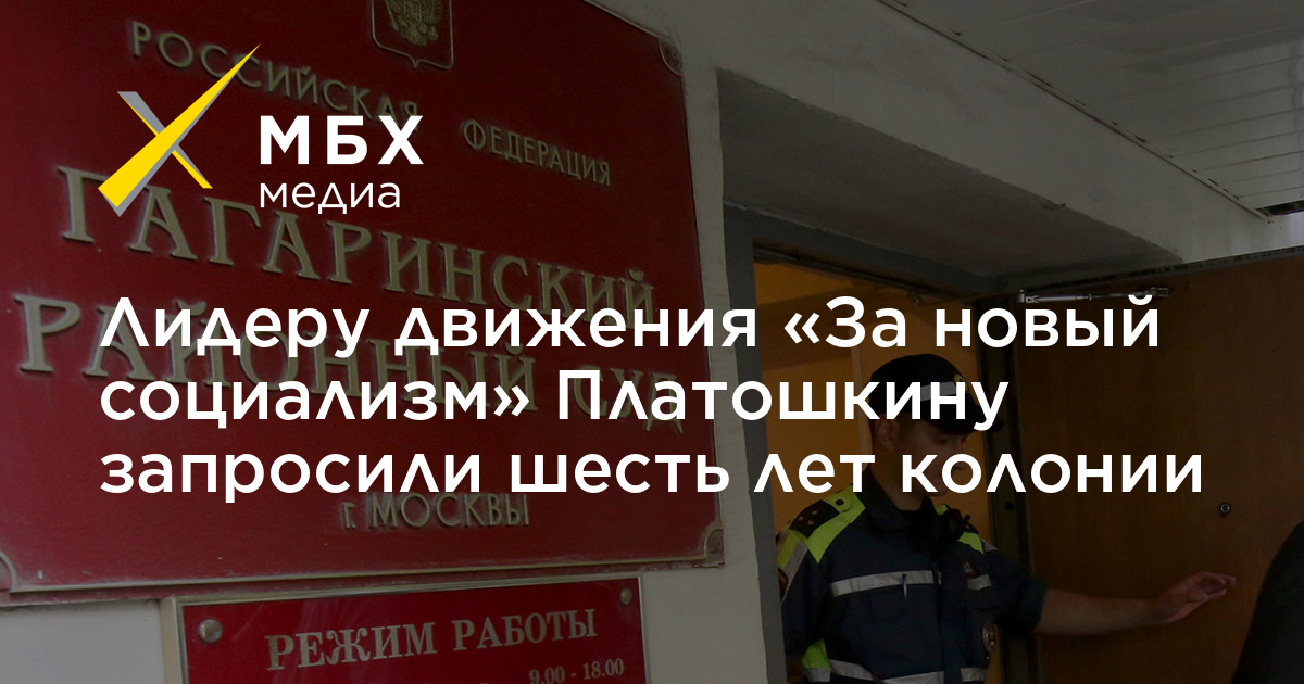 Прокурор в ходе прений в Гагаринском районном суде запросил лидеру движения «За новый социализм» Николаю Платошкину наказание в виде шести лет колонии общего режима. Об этом «МБХ медиа» сообщили в суде.