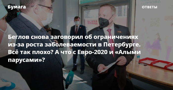 Беглов снова заговорил об ограничениях из-за роста заболеваемости в Петербурге. Всё так плохо? А что с Евро-2020 и «Алыми парусами»?