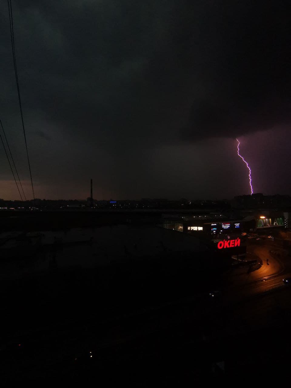 Петербург накрыло ливнями и грозой. Посмотрите, как молния озаряла почерневшее небо ⚡