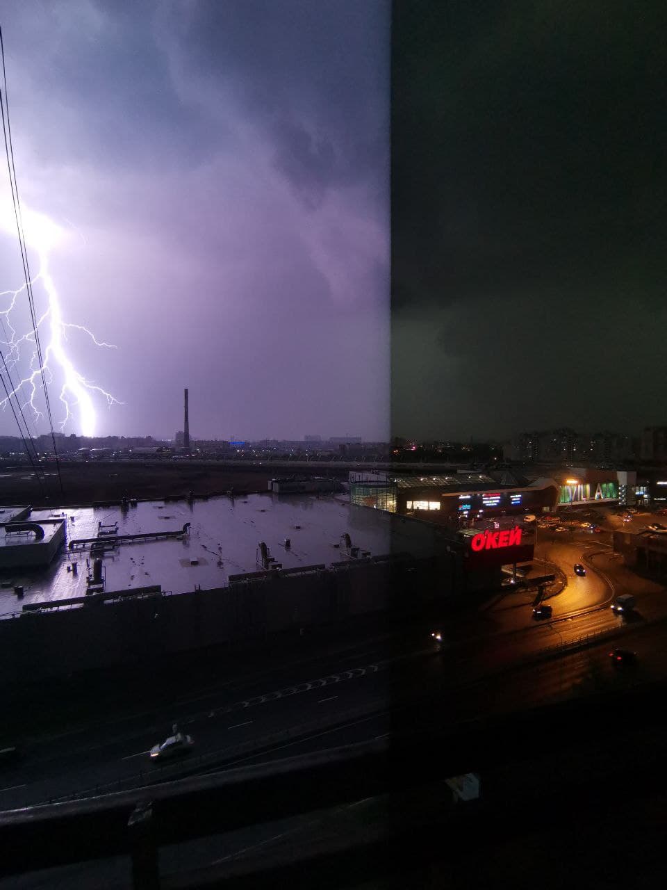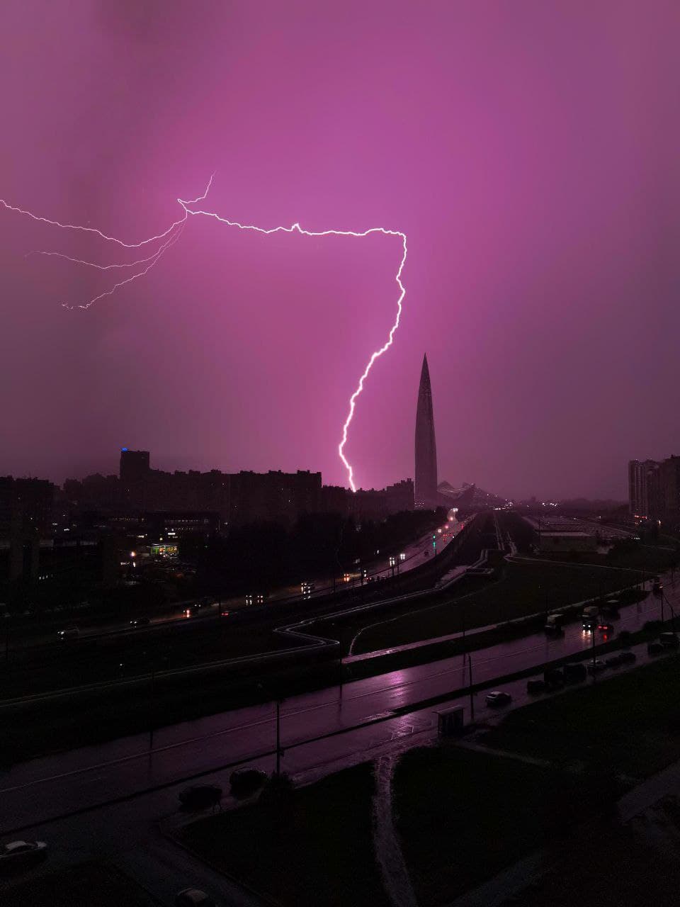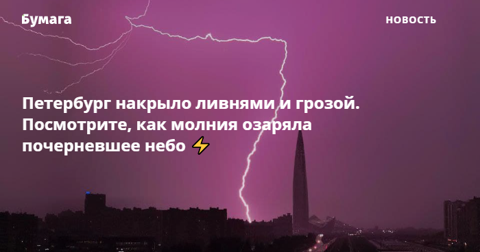 Небо этим вечером сильно почернело, вспышки замечают по всему городу — в том числе у «Лахта Центра». «Бумага» показывает фото читателей. Обо всех последствиях непогоды читайте здесь.