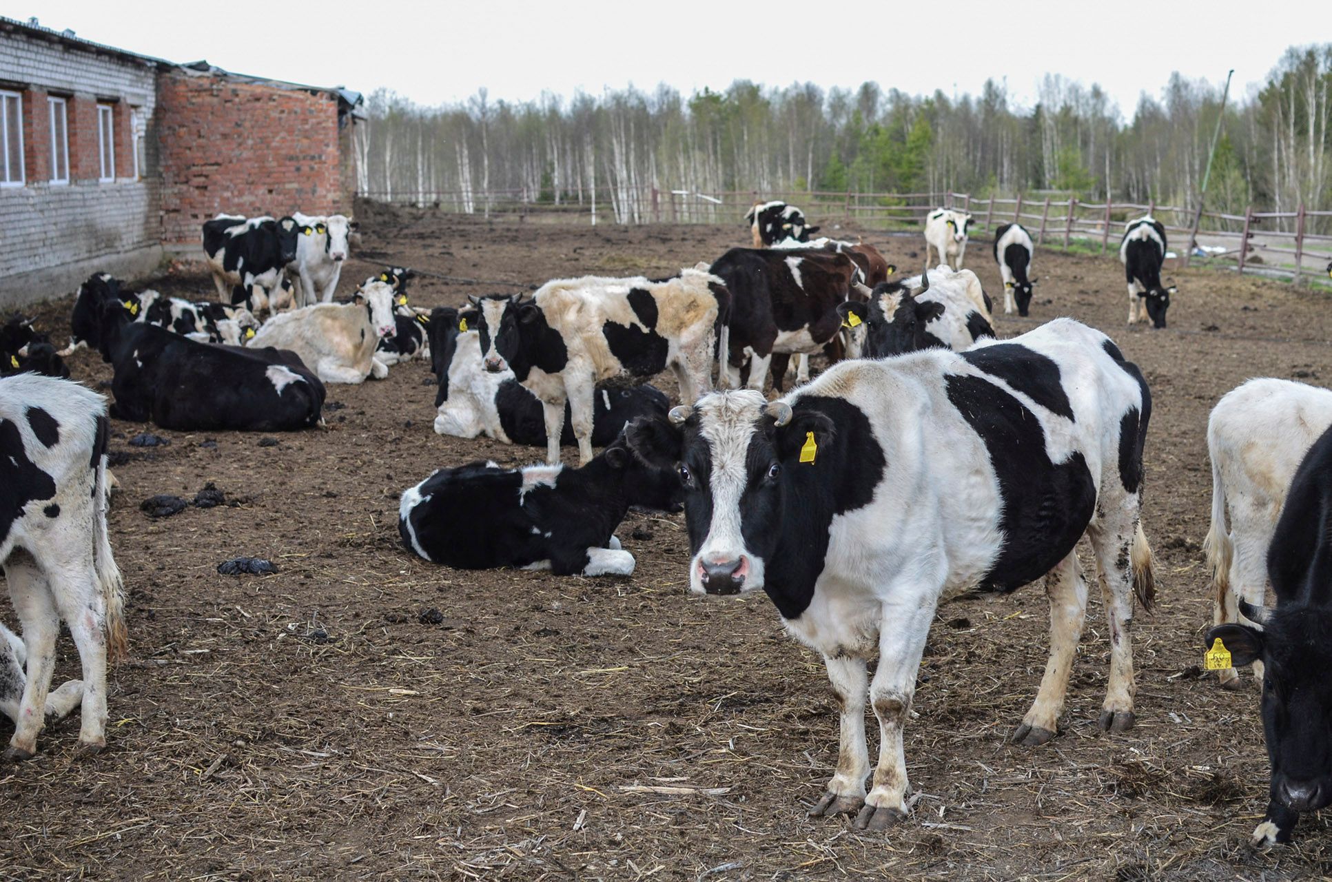 Мансур Велиев и его жена Ольга Костюрина два года назад купили несколько десятков коров; теперь их 107. Одна родила буквально несколько часов назад.