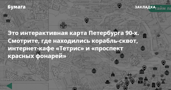 Карта Петербурга 90-х доступна по ссылке. На ней размещено около 65 точек города, важных для эпохи, по мнению создателей. Чтобы узнать больше о той или иной точке, необходимо кликнуть на ее название и нажать «Исследовать». В описание мест включены воспоминания людей, которые запомнили их в 90-е. Это в том числе Сергей Шнуров, Александр Цыпкин, Кирилл Набутов и другие.