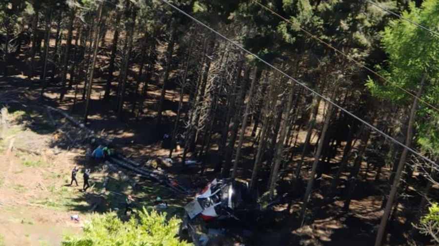 Телеканал Rainews24 сообщает, что несущий трос канатной дороги оборвался в наивысшей точке незадолго до конца маршрута. Телеканал со ссылкой на спасателей передает, что в результате падения кабину смяло и она оказалась в лесистом и труднодоступном участке, из-за чего спасатели не сразу смогли оказаться на месте крушения.