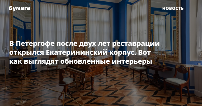 В Петергофе после двух лет реставрации открылся Екатерининский корпус. Вот как выглядят обновленные интерьеры
