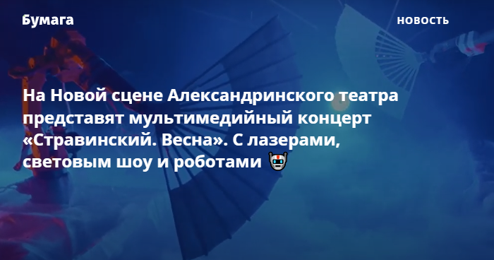 На Новой сцене Александринского театра представят мультимедийный концерт «Стравинский. Весна». С лазерами, световым шоу и роботами 🤖