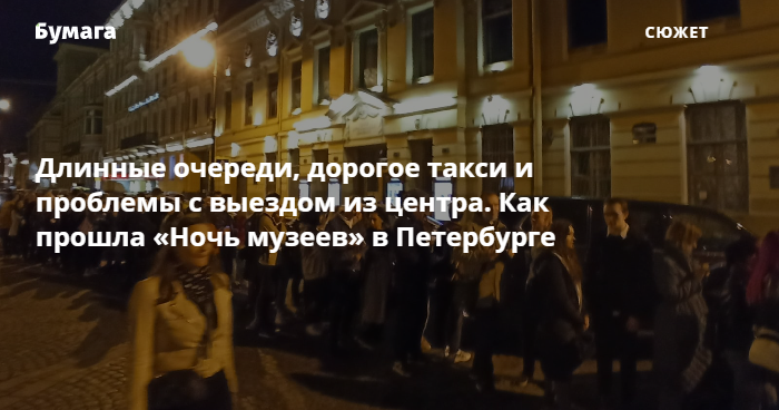 Длинные очереди, дорогое такси и проблемы с выездом из центра. Как прошла «Ночь музеев» в Петербурге