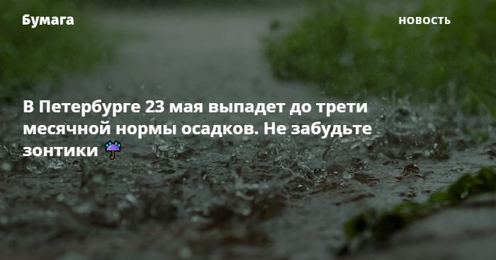 В Петербурге 23 мая выпадет до трети месячной нормы осадков. Не забудьте зонтики ☔