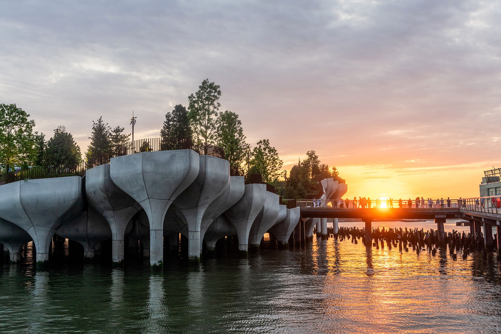 Он расположен прямо на реке Гудзон — на 132 бетонных колоннах, вкопанных в дно. Парк спроектировал британский дизайнер Томас Хизервик, известный, в частности, как автор чаши олимпийского огня на лондонских Играх 2012 года. Строительство обошлось в 260 миллионов долларов.