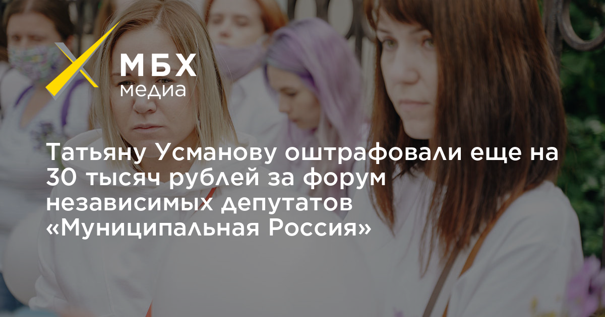 Измайловский районный суд Москвы оштрафовал координатора «Объединенных Демократов» Татьяну Усманову на 30 тысяч рублей за организацию форума «Муниципальная Россия». Об этом «МБХ медиа» сообщил юрист «Правозащиты Открытки» Георгий Тевосов.