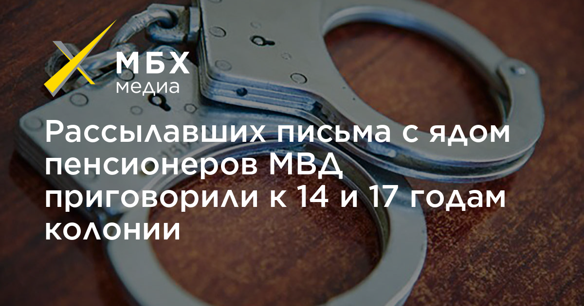 Рассылавших письма с ядом пенсионеров МВД приговорили к 14 и 17 годам колонии