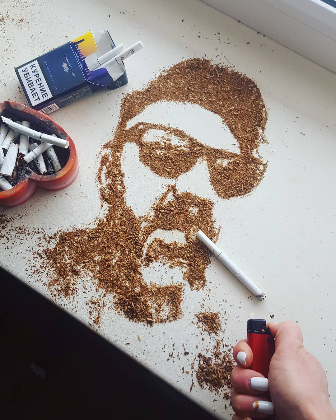 – Зубы мне достал хозяин уфимской стоматологии Евгений Новиковский, которому сейчас я оформляю стену в клинике. Я просто попросила много зубов для картины, и он их нашел. Отличный парень и специалист, спасибо ему большое. На картину ушло около 500 зубов и 5 часов времени. Очень оказалось сложно ими рисовать. К примеру, мусором Моргенштерна я нарисовала за час.