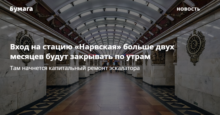 Вход на стацию «Нарвская» больше двух месяцев будут закрывать по утрам