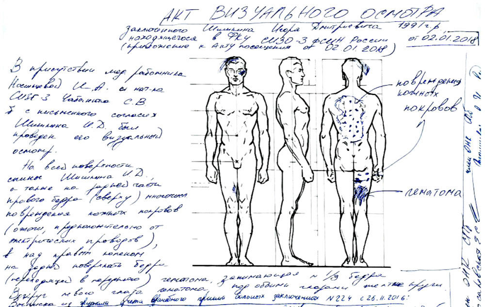 Как только Филинков оказался в питерском СИЗО, к нему сразу приехали члены ОНК Яна Теплицкая и Екатерина Косаревская. Они зафиксировали на его теле гематомы и следы ожогов от электрошокера.