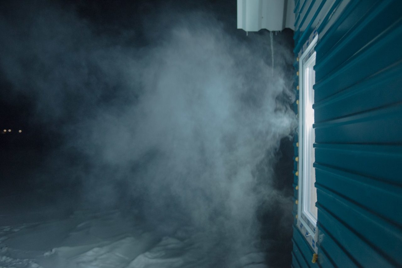 Пар, выходящий из баниФото: Сергей Карпов / Поле для ТД В береговом центре круглый год находятся два дежурных — оператор и электрик, они следят за работой установки, а со второй половины февраля по начало апреля экспедиция отправляется на лед Байкала, чтобы смонтировать новые гирлянды и отремонтировать старые.