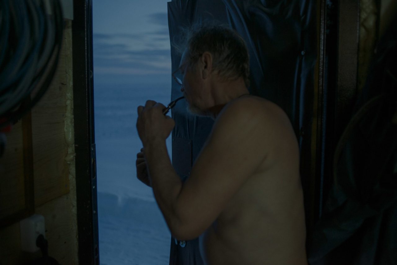 Инженер-исследователь НИИ прикладной физики Иркутского государственного университета Юрий Лемешев курит трубку, стоя в своем балке на берегу озера БайкалФото: Сергей Карпов / Поле для ТД Попадешь колесом в трещину или продух — придется доставать машину. И это еще если она не уйдет под лед — тут хоть бы выпрыгнуть успеть.