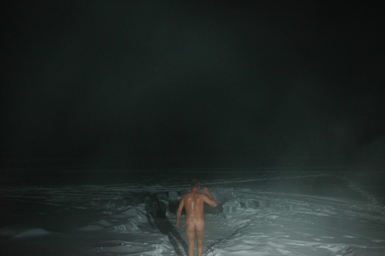 Научный сотрудник идет купаться в майну после баниФото: Сергей Карпов / Поле для ТД Вообще, лед воспринимается байкальскими физиками как живой и сложный организм. Профессор Буднев говорит, что у льда есть что-то похожее на память. Кубики вытаскивают из майны и обычно складывают рядом с ней. Они являются индикатором состояния льда. «К концу марта такой кубик буквально за несколько часов весь превращается в иголки. Причем лед помнит, как он рос: если ты кубик положил на бок, иголки будут горизонтальными. Если поставил вертикально, иголки будут вертикальными. У него кристаллическая структура, и он разрушается в соответствии с тем, как он рос. Утром его вытащил, вечером подошел, ногой пнул его — он рассыпается на эти иголки. Такие спицы — диаметр меньше сантиметра. И то же происходит со всей толщей льда. Лед не тает на Байкале как таковой, он разрушается, меняется его структура. При этом резко падает его несущая способность именно вот для проезда».