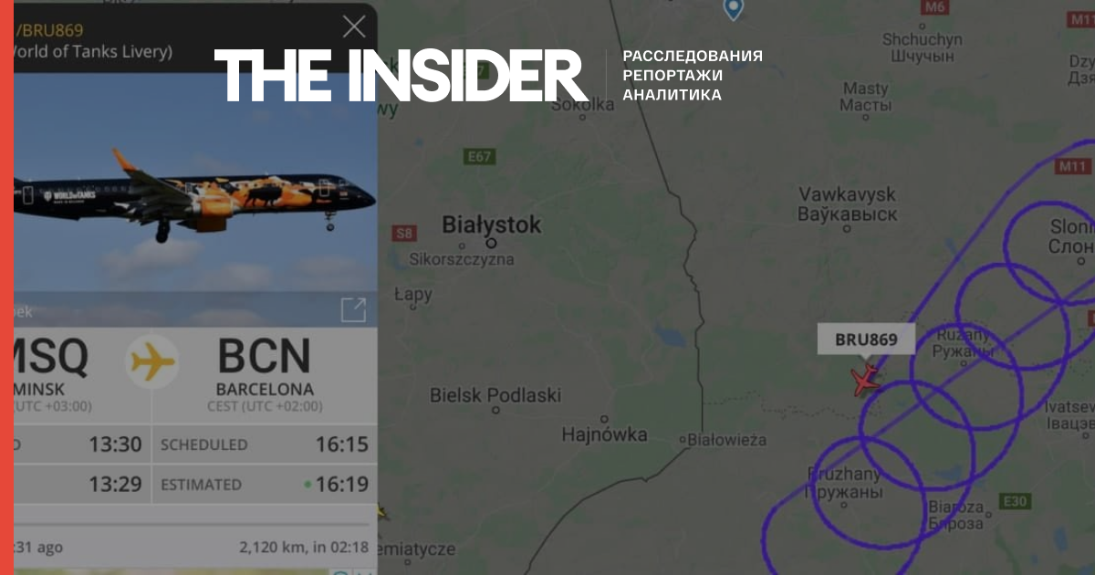 Речь идет о самолете «Белавиа», который выполнял рейс Минск — Барселона. Судя по данным Flightradar, сейчас лайнер летает кругами недалеко от границы, вырабатывая топливо.