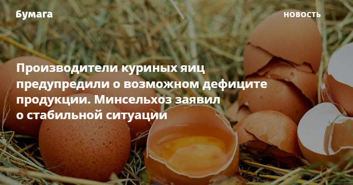 Минсельхоз не соглашается с производителями. Как заявили в ведомстве, ситуация с яйцами — стабильная и «комфортная для дальнейшего наращивания объемов производства птицеводческой продукции». Представитель Минсельхоза сказал, что предприятиям помогут меры поддержки отрасли, в частности льготные кредиты до 1,5 миллиарда рублей.