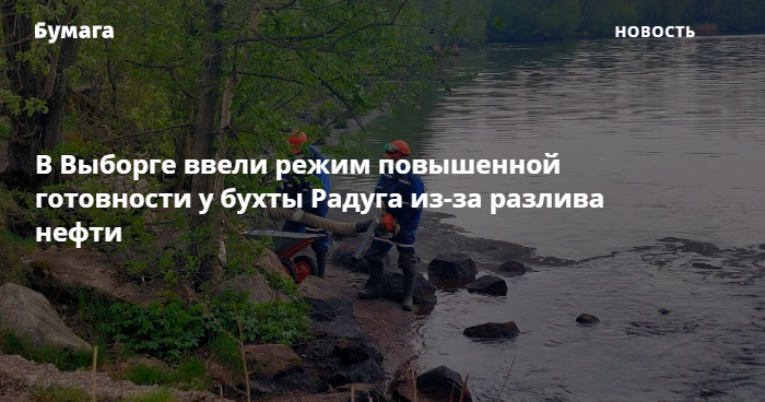 В Выборгском районе Ленобласти ввели режим повышенной готовности у бухты Радуга — там произошел разлив нефти. Об этом сообщает местная администрация.