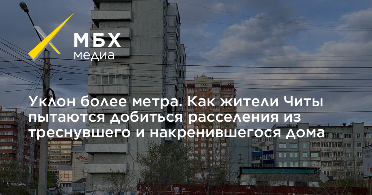 Следственный комитет возбудил уголовное дело о халатности должностных лиц в администрации Читы –– чиновники уже больше полугода не расселяют аварийный дом, в котором живет 148 человек. «МБХ медиа» выяснило у жильцов «панельки», как они готовятся к обрушению дома, треск стен мешает им спать и почему региональные бюджеты не позволяют расселять жилье.