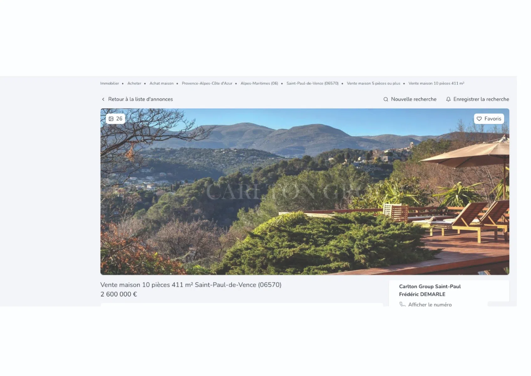 Объявление о продаже виллы в районе Che de la Cairee Saint-Paul-De-Vence на Лазурном Берегу Франции