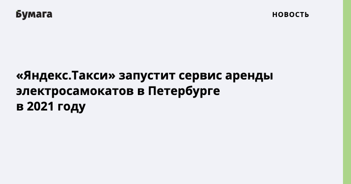 «Яндекс.Такси» запустит сервис аренды электросамокатов в Петербурге в 2021 году