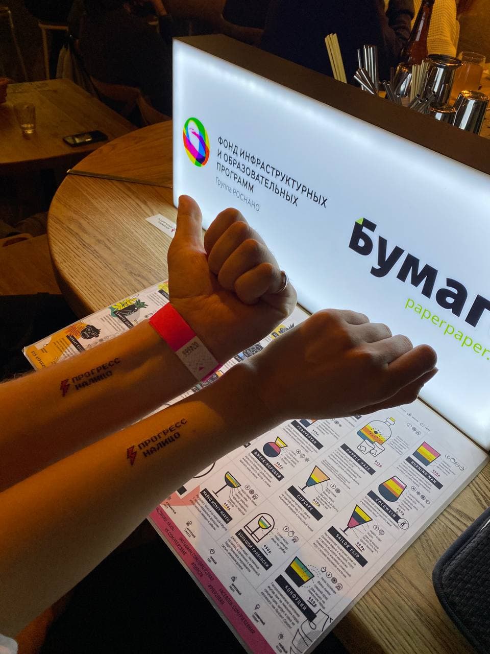 А еще делали переводные татуировки «Прогресс налицо»! Их раздавали гостям фестиваля.