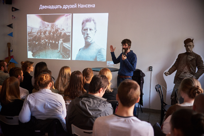 А еще — о полярных экспедициях. Вот фото с выступления Сергея Пряхина.
