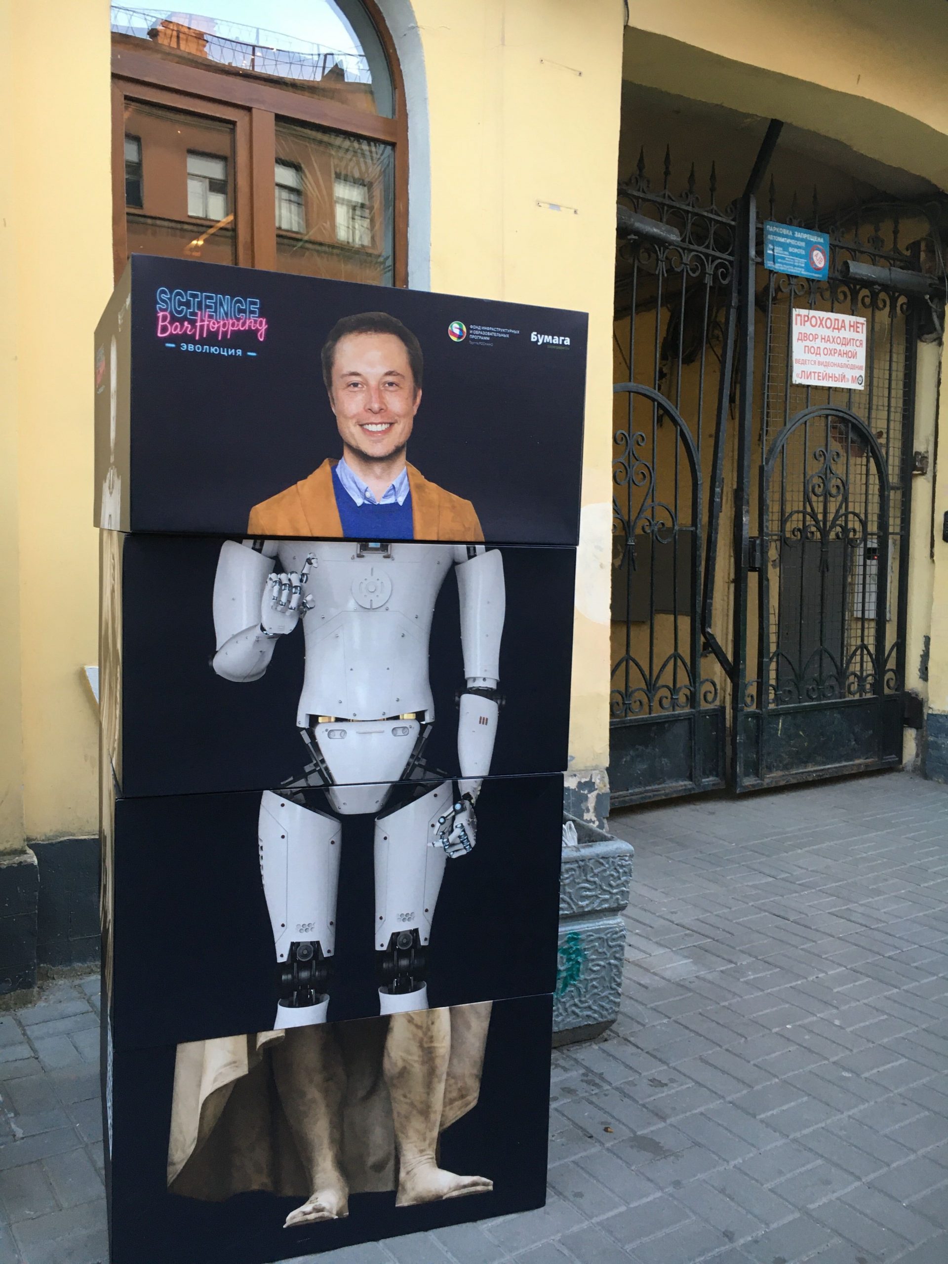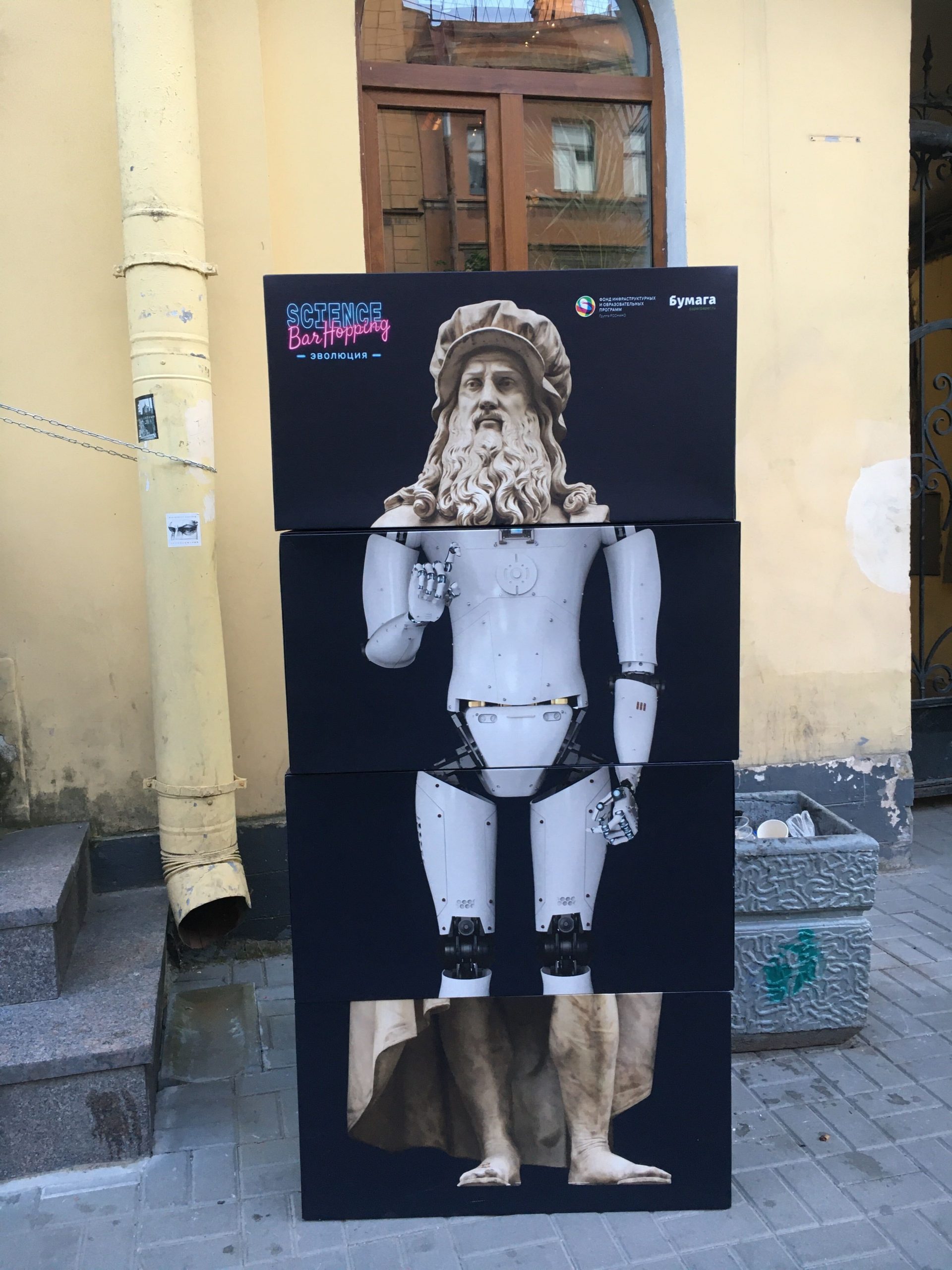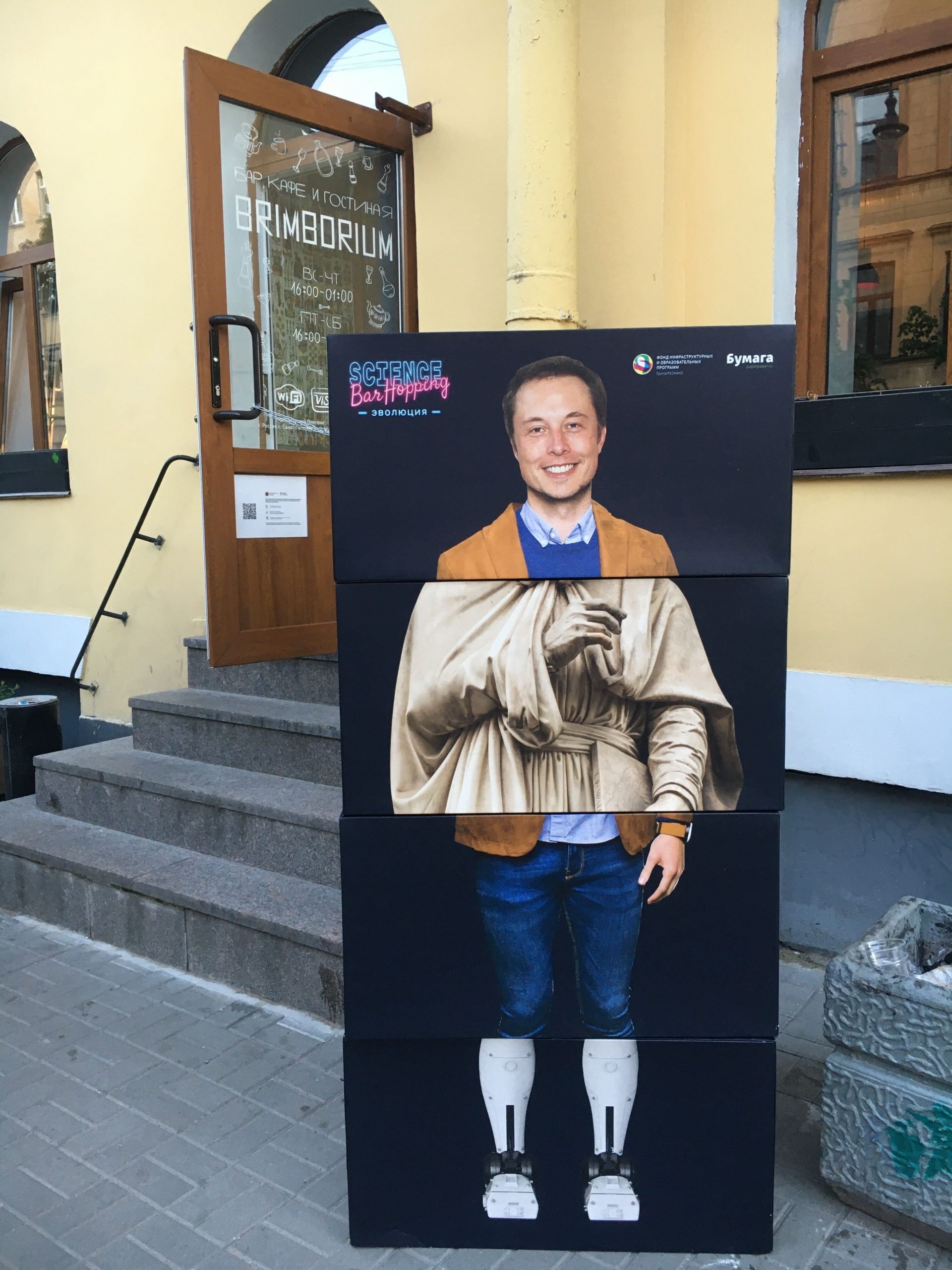 Бары, где проходил Science Bar Hopping, можно было узнать по фигурам-трансформерам с роботом, Леонардо да Винчи и Илоном Маском. Все их крутили, составляя разные комбинации.
