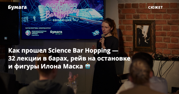 Рассказываем, как прошел Science Bar Hopping — с баром друзей «Бумаги», фигурами Илона Маска и мини-рейвом.