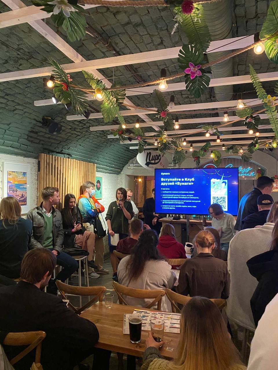 Кстати, у Клуба друзей «Бумаги» был свой бар — «Пирс 28» на Некрасова. Там выступали ученые —члены Клуба, а модерировала лекции редакторка рассылок Влада Петрова.