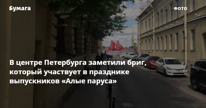 Днем 1 июня в центре Петербурга заметили бриг «Россия», который участвует в празднике выпускников «Алые паруса». «Бумага» показывает фотографии очевидцев.