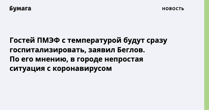 Ранее Беглов заявил, что в Петербурге на время ПМЭФ создадут резерв коек для пациентов с COVID-19