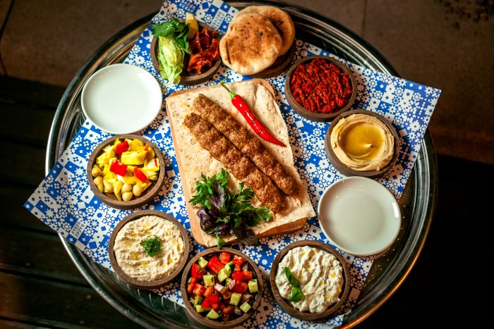 Главное блюдо — турецкий кебаб, который здесь готовят на открытом огне в семи вариациях: из баранины, телятины и курицы на открытом огне. Кроме того, в меню есть версии кебабов с фисташками и острым перцем.