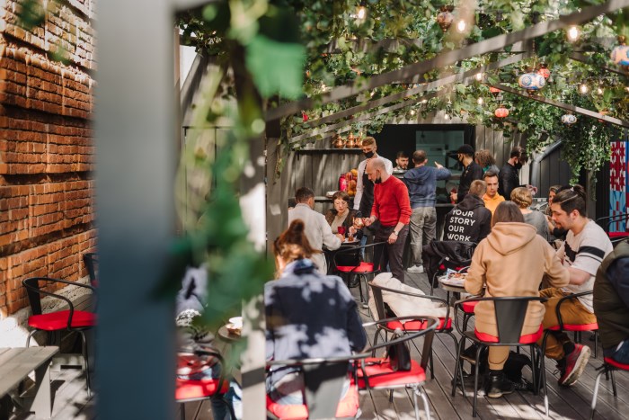 На Новой Голландии запустили летний поп-ап-проект — уличное кафе Bazar Kebap, расположенное в тупике между зданием кузни и корпусом № 17, рассказали «Бумаге» в пресс-службе общественного пространства.