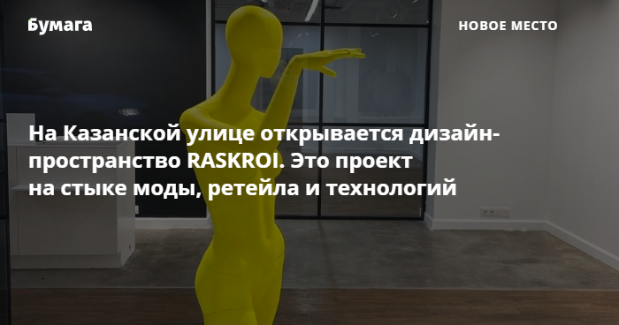 На Казанской улице, 25 открывается дизайн-пространство RASKROI, сообщили «Бумаге» создатели площадки. Проект начнет работу 3 июня, пространство будет работать на стыке моды, ретейла и технологий.