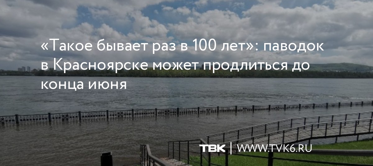 Затопить может участки в Усть-Мане, Овсянке, Слизневе, Дивногорске, Ермолаеве, Есаулове Березовского района, Кубекове, Куваршине, Частоостровском Емельяновского района, Атаманове, Кононове Сухобузимского района. В Красноярске в зону риска подтопления попадают:«В этом году на конец мая запасы воды в снежном покрове Западного и Восточного Саянов действительно рекордные. Они близки к историческому максимуму за весь период наблюдений и составляют от 210 до 240% нормы, то есть эта вода, которая еще поступит в водохранилища на Енисее – Саяно-Шушенское и Красноярское. Уже в мае приток воды был достаточно большой, в июне мы ожидаем, что он в Саяно-Шушенском и Красноярском водохранилищах будет на 35-50% больше нормы. Повторяемость такого большого притока – 1 раз в 100 лет», – сообщил Сергей Борщ, директор Гидрометцентра России.