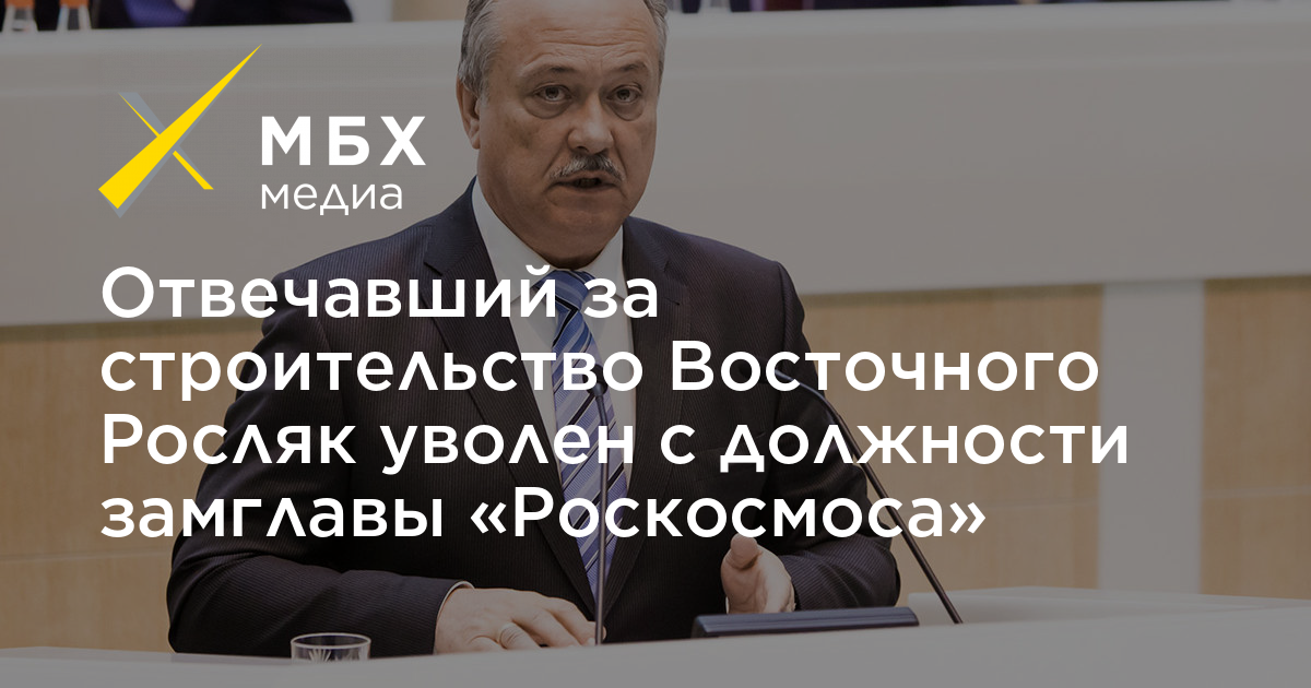 Отвечавший за строительство Восточного Росляк уволен с должности замглавы «Роскосмоса»